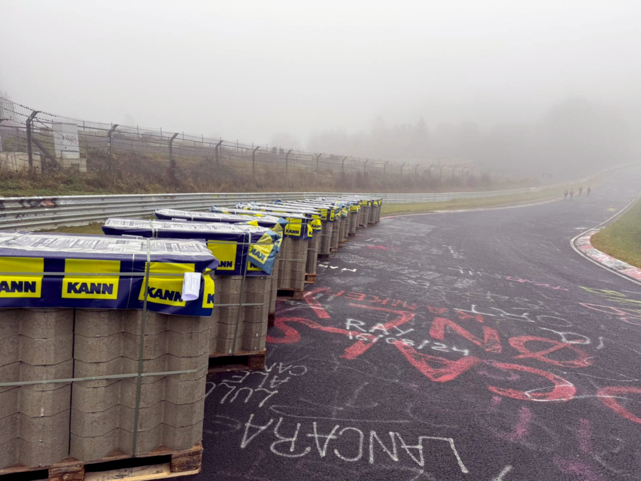 An den unterschiedlichen Stellen der Nürburgring-Nordschleife stehen z. Zt. Stapel von Rasenbausteinen bereit, um so verbaut zu werden, dass sie die Rennstrecke verbreitern, um „Ideallinien“ möglich zu machen, die einer Geraden ähneln und damit „schneller“ sind. - Aber natürlich sollen auch „Rattersteine“ warnen.