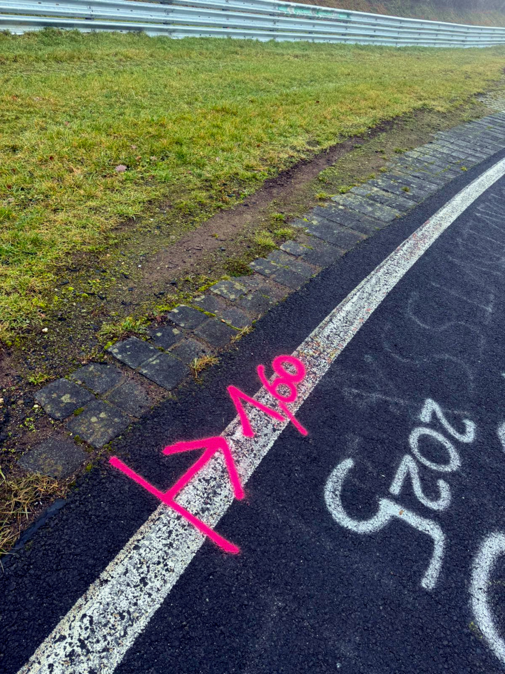 Bei einem Langstreckenrennen werden – trotz „Track Limits“ – besonders die GT3 über die Streckenbegrenzungen „räubern“, den Aufbau ihrer Rennreifen schädigen und dann – ab und an – an anderer Stelle – z.B. in der „Kompression’“ am „Tiergarten“ – einen Reifenschaden erleiden.