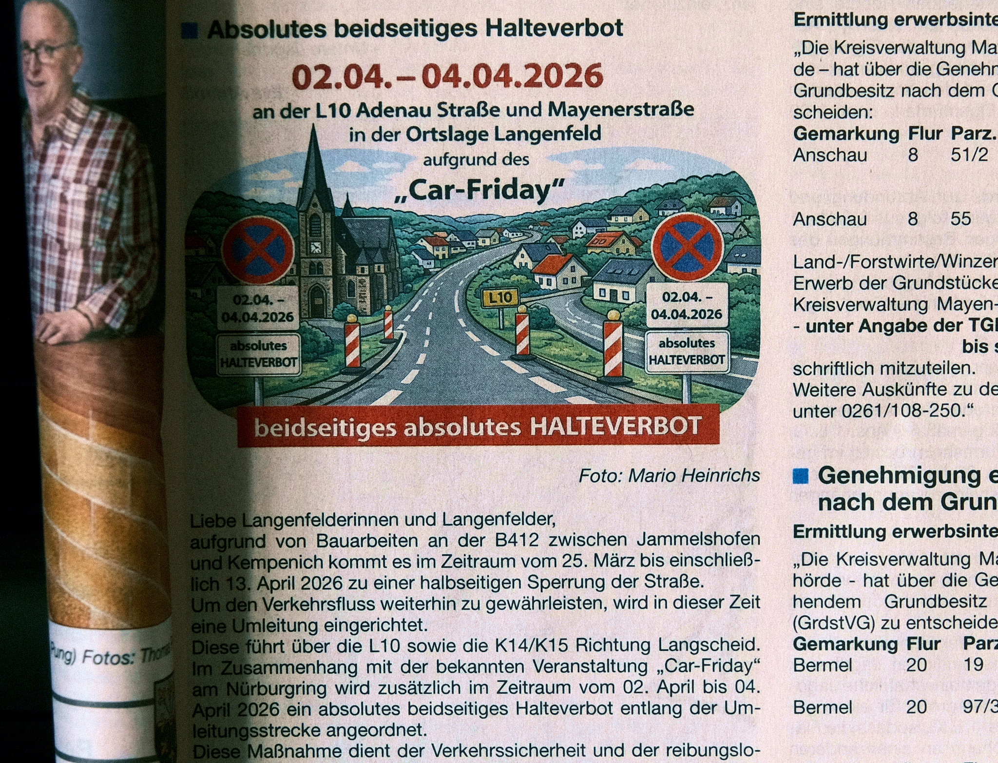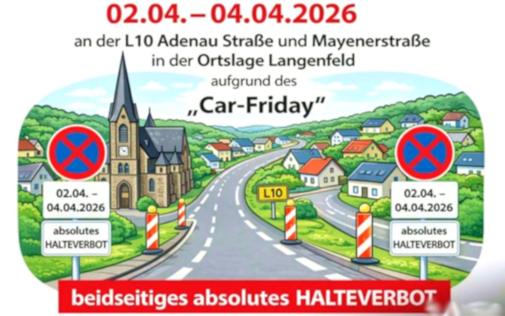 So wird es sicherlich bestimmt auf dem Weg über die B 412 zum beliebten Parkplatz „Brünnchen“ zu Stauungen kommen. Da erscheint eine Geschwindigkeitsbeschränkung auf 70 km/h, wie ein Witz. Man sollte aber auch das Halteverbot auf dieser Straße beachten, weil gerade hier dann unverzüglich durch die Polizei ein Abschleppen veranlasst wird.