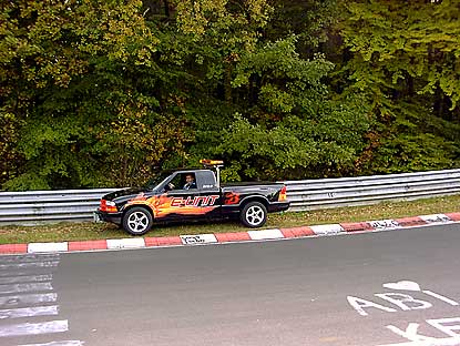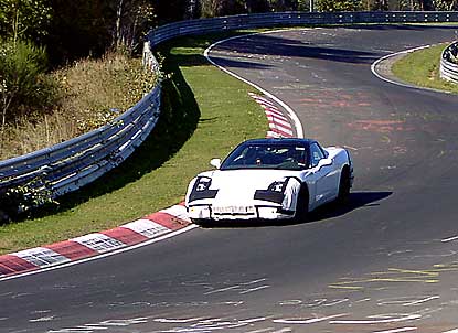 Vor Tagen fuhr ein anderes Corvette-Versuchsexemplar (Farbe: beige, Motor um 7,2 l Hubraum) unter diesen Bedingungen eine Zeit von 8:08 min. Hier ein Photo dieses Vorserien-Exemplars.