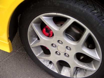 Innenbelüftete Scheibenbremsen. An diesem Foto sieht man auch, dass sie bei diesem Fahrzeug genutzt wurden.