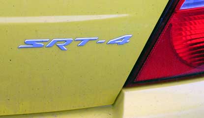 Und das ist seine Typenbezeichnung. Die Basis stammt vom Dodge Neon. So sieht er von hinten aus, versehen mit einem richtigen Heckflügel: