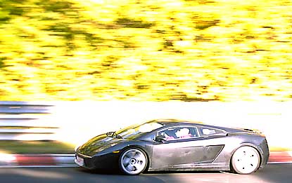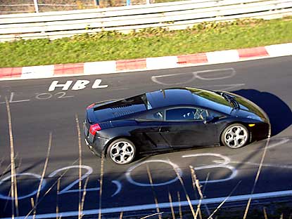 Nicht nur ein schönes Auto. Auch ein gutes. - Und wenn ich Ihnen ein Farbtipp geben darf: bestellen Sie ihn nicht in Gelb, wie man ihn oft sieht, auch nicht in Schwarz, sondern in einem "Orange-Métallisé". In Kombination mit einer schwarzen Lederausstattung. - Lassen wir einen schwarzen Gallardo noch einmal in eine andere Richtung (als oben) fahren.