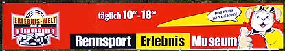 Aber es sind noch so Kleinigkeiten passiert, die man hier gut unterbringen kann. So hat man bei der Nürburgring GmbH wohl auch meine Geschichte über den geheimen Opel-Test gelesen. In dieser Geschichte hatte ich mir auch ein paar Gedanken zu einem Werbeschild für die "Erlebniswelt" des "Rings" im Streckenabschnitt "Brünnchen" gemacht. Man hat mich verstanden. Der Fotobeweis: