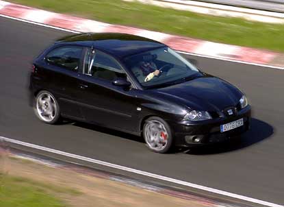 Das ist der neue SEAT Ibzia FR. Das Foto oben ist ein Werksfoto. Es lässt den Wagen relativ "mild" wirken. Optisch eigentlich nicht aufregend, dieser Ibzia FR. - F steht für Formula, R für Racing. Der 150 PS-Turbomotor (1,8 l Hubraum, 20 Ventile) bringt das um 1100 Kilogramm wiegende Fahrzeug mit Fahrer in 8,4 sec von Null auf 100 km/h und die Höchstgeschwindigkeit wird erst bei 216 km/h erreicht. Das Drehmoment von 220 Nm lässt ein gut zu fahrendes Auto erwarten.