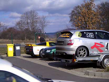 04-03-17/04. - Auf die Langstreckenmeisterschaft 2004 bereiten sich die Teams perfekt vor. Gewinnen ist hier nicht leicht. Die Konkurrenz ist groß. Also nímmt man auch - gerne - das Angebot zu einer Einstellfahrt wahr. In diesem Falle lag der besondere Reiz darin, dass man - anders als bei der nächsten Einstellfahrt am 20.März - das Fahrzeug mit zwei Personen um den Kurs bewegen konnte. Da gibt es so manches Team, in dem ein neuer Fahrer an der Seite eines "alten Fuchses" den Erfolg sucht. Der "alte Fuchs" möchte da schon den "Frischling" ein wenig anlernen, oder auch einen persönlichen Eindruck von seinen Fähigkeiten gewinnen.