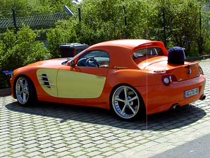 Es gibt da eine Firma, AC-Schnitzer (in Aachen), die BMW-Automobile optimiert. Meist fahrwerk- und leistungsmäßig. Aber natürlich versucht man sich auch an Anbauteilen. Da gibt es Spoiler und... - Aber das ist es nicht, was mich bei einer AC-Schnitzer-Version des BMW Z4 so fasziniert: es ist die farbliche Aufteilung der Flächen. Die dem Betrachter dann auch die Augen öffnet: so hat sich Chris Bangle den Z4 wohl erträumt, dann doch nicht getraut und... - Also werfen wir doch zunächst mal einen Blick auf die AC-Schnitzer-Version: