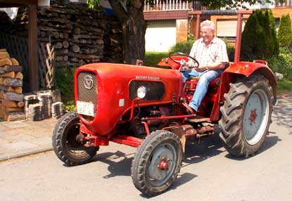 Der hat schon bessere Tage gesehen, ist inzwischen vierzig Jahre alt. Sein Dompteur tritt jetzt noch einmal richtig auf das "Gaspedal", wirft den Gang heraus und hoppelt mit richtigem Schwung zu Tal.