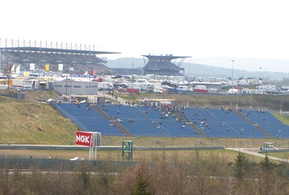 Zunächst habe ich aber mal von dort das Gegenüber, das Fahrerlager und die Tribünen fotografiert: