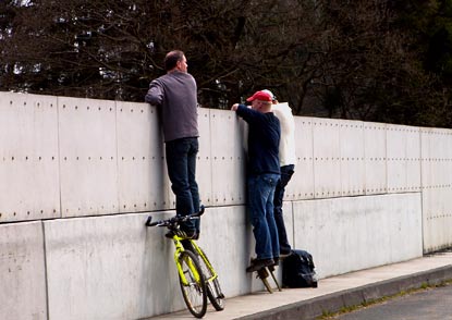 Ich fahre weiter zur "Antoniusbuche", wo ich auf der Brücke auch "jede Menge" (3 Stück) Zuschauer entdecke, denen das Zuschauen nicht leicht gemacht wird: