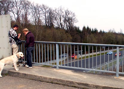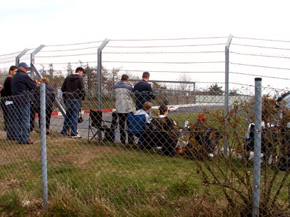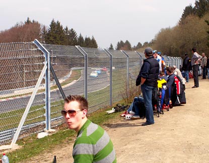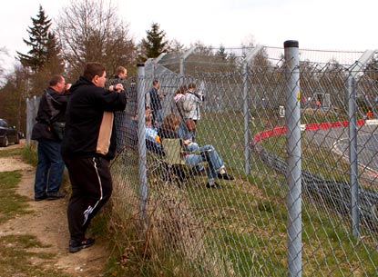 ...da stehen jetzt gerade mal vier Personen, die nun - trotz Erhöhung - durch den Zaun schauen müssen. Und wer steht schon gerne hinter Gittern? Also mit diesem Platz verglichen, war oben in der ersten "Hatzenbach"-Kurve richtig was los: