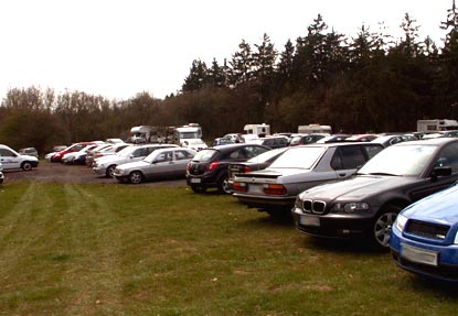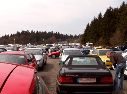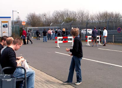 Von hier aus bin ich dann weiter entgegen der Rennstreckenrichtung zur offiziellen Einfahrt Nordschleife gefahren. Dort habe ich auch um 50 Automobile gezählt und um 100 - 150 Besucher.