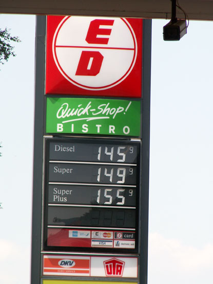 ...exakt 149,9 Cent, während bei der ED-Tankstelle in Zermüllen (Kelberg-Zermüllen) glatte 5 Cent weniger verlangt wurden, weil man sich dort aus Konkurrenzgründen an den Tagespreisen der am gleichen Ort befindlichen "star"-Tankstelle orientieren muss: