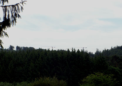 ...erinnert mich an die Großbaustelle "Nürburgring 2009", weil die Baukräne - rund 5 Kilometer entfernt - die Eifelwälder überragen. Da vermittelt ein Blick rechts und links des Weges schönere Impressionen:
