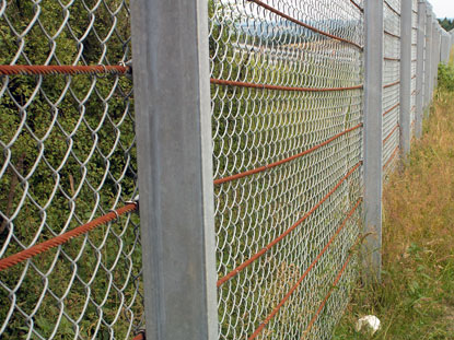 Ich schrecke aus meinen Gedanken auf, weil ich nun auf eine Reihe von Zaunelementen stoße, die sich mir optisch so darstellen: