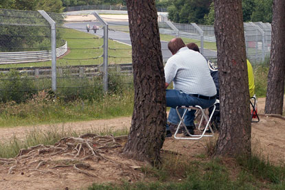 Wobei ich das Schild nicht ganz verstehe. Ist nun hinter diesem Zaun, hinter den ich auch wegen der abgeschlossenen Tür nicht komme, kein Zuschauerplatz. Oder stehe ich schon jetzt hier - trotz FIA-Zaun - falsch? - Ich schaue noch ein wenig zu...