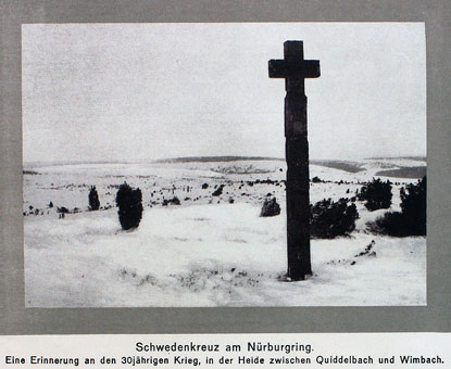 ...das "Schwedenkreuz". Weil ich da noch über ein Vergleichsfoto - wahrscheinlich aus dem Jahr 1925 - verfüge, kann ich hier einmal zeigen, wie dieses Kreuz hier ohne FIA-Zaun und dreifache Leitplanken wirkte: