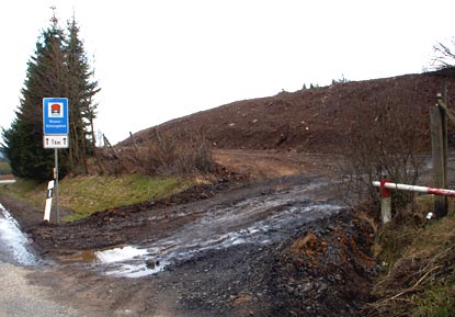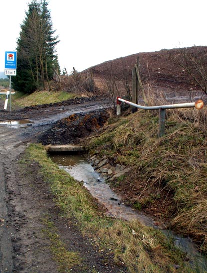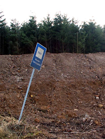 Von hier aus reicht das Wasserschutzgebiet noch 1 km weit. Darum wird hier auch wie wild - rechts und links der Straße - also wirklich in einem Wasserschutzgebiet abgekippt. - Noch mal eine andere Sicht der Dinge: