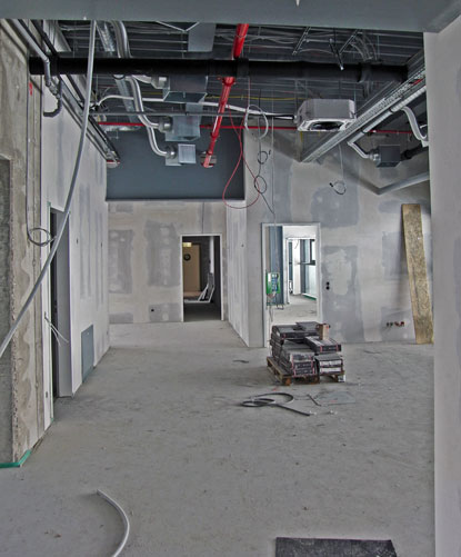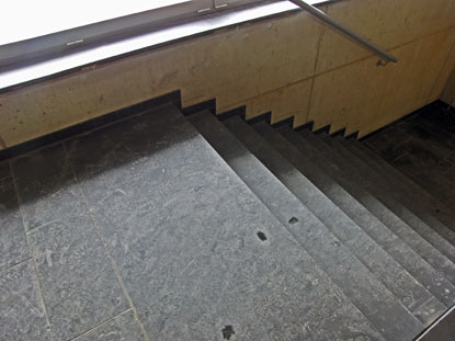 Hier das Treppenhaus - oder besser - eins von vielen. Aber auch die Loungen werden in Schiefer ausgelegt. Hier die...