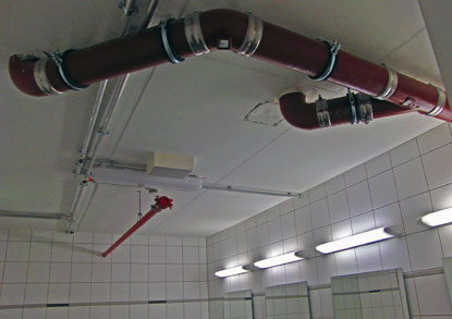eindrucksvolle Art der Rohrverlegung. Was hier zuviel ist, ist dann auf