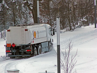 ...liefert weiter rechts gerade ein Tanklastwagen...