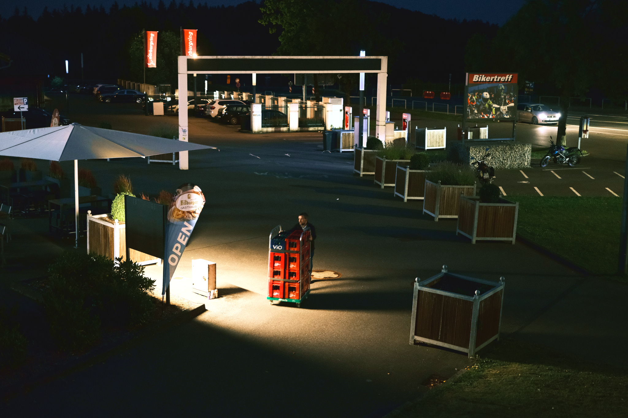 Es waren zwei gute Bekannte, die mir ein besonderes Erlebnis versprachen, wenn ich mal abends, so gegen 22 Uhr, den Nürburgring besuchen würde. Das war wenige Tage vor dem DTM-Wochenende. Ich habe das als eine gute Anregung empfunden, denn ich wollte immer schon mal meinen „Fotoapparat“ in Verbindung mit bestimmten Objektiven testen, wie das dann alles unter schlechten Voraussetzungen noch zu nutzen ist. - Nun habe ich nicht gewusst, wann es wirklich dunkel wird. Darum habe ich mal auf der App meines Handys nachgeschaut, wie denn z.B. die Voraussetzungen für einen nächtlichen Besuch des Nürburgrings am Freitag, dem 8. August, waren. Dass das gerade vor dem DTM-Wochenende war, hat mich nicht gestört und würde sicherlich auch kaum einen DTM-Teilnehmer zu der Uhrzeit stören. Auf meinem Handy fand ich folgende Informationen: „20:17 Uhr Goldene Stunde - 21:03 Uhr Sonnenuntergang – 21:05 Uhr Mondaufgang – 21:26 Uhr Blaue Stunde – 21:41 Uhr Nautische Dämmerung – 22:29 Uhr Astronomische Dämmerung – 23:29 Nacht.“ - Da war mir klar, dass ich der Empfehlung meiner Bekannten gerne folgen würde. - Aber das sicherlich ein wenig anders, als das deren Vorstellungen entsprach. - Dafür kommen dann meine Leser – hoffentlich! - in den Genuss von ein paar Aufnahmen und Schnappschüssen, wie man sie in Verbindung mit dem Nürburgring eigentlich nicht gewohnt ist und erwartet. Dazu gibt es - vielleicht – auch noch ein paar – von mir - „ungewohnte“ Informationen aus meiner „Fotografier-Praxis“.